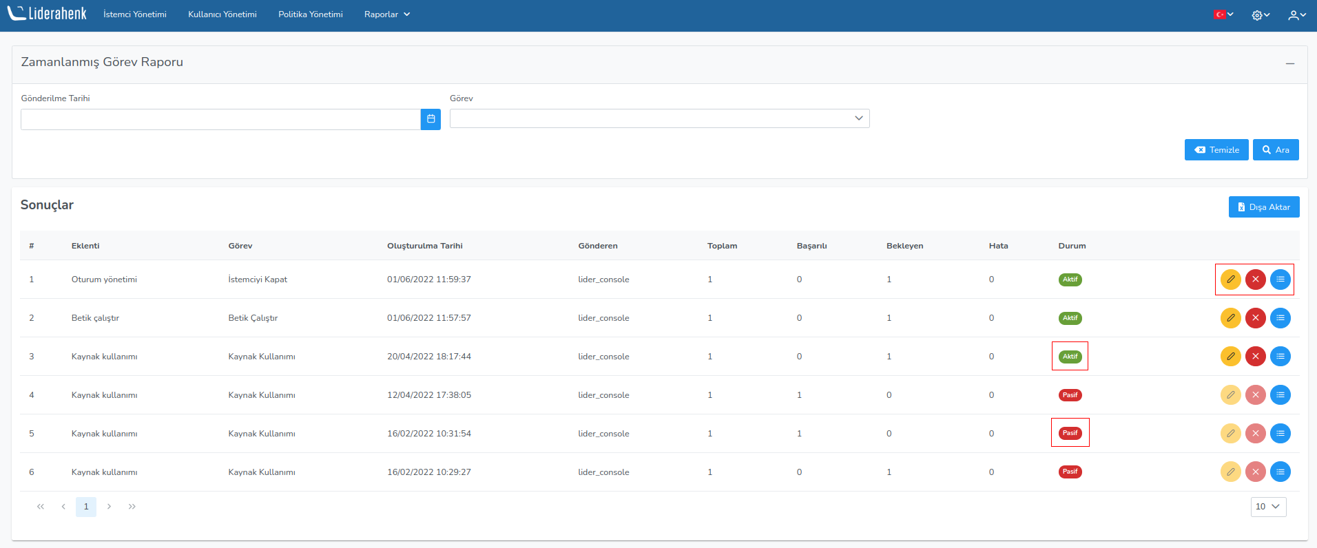 To get detailed information about the listed scheduled tasks, click the corresponding button. You can get detailed information about the tasks, delete or edit them.