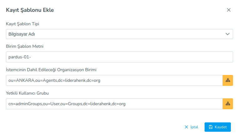 Clients that start with the text specified in the template can only join the domain that is a member of the group specified in the template. to be received by the users and have these users under the Organization Unit given in the template. allows to be created. For example template name: